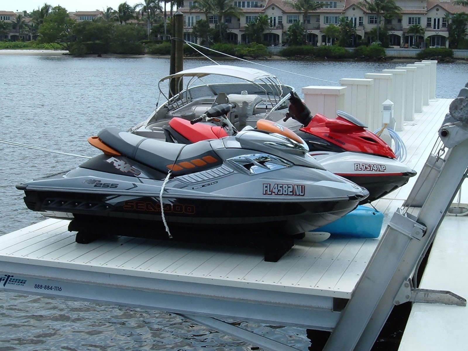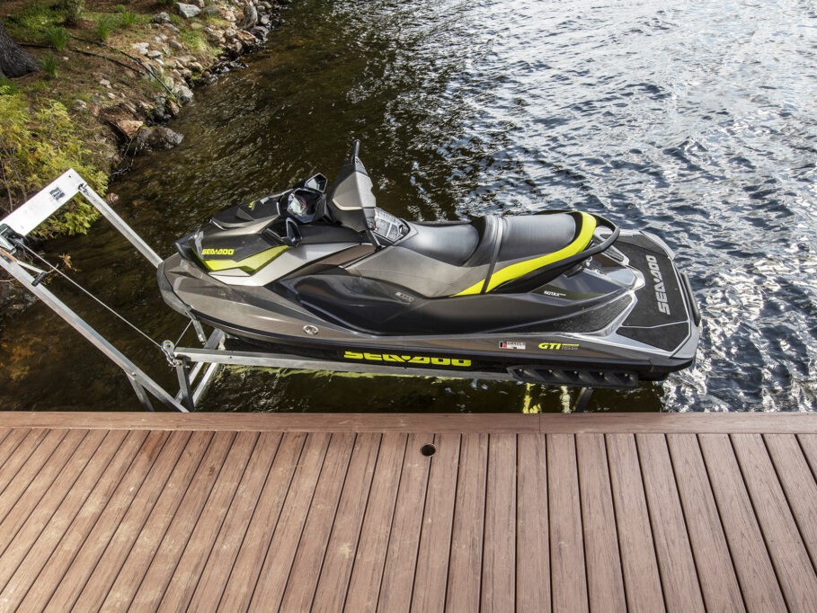 PWC lifts are designed to lift and store your jet ski, kayak, jet boat, or small skiff/boat out of the water at two different elevations. They are available in dock-mounted, pile mounted, free-standing, and drive-on models, and can accommodate jet skis up to 7 feet wide.